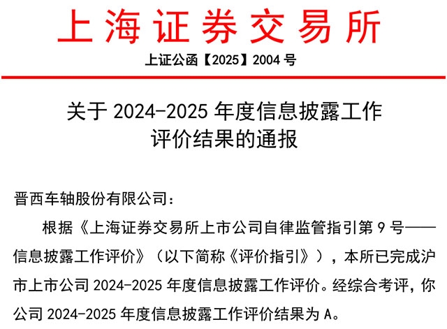 合規(guī)為基 價(jià)值為本 行穩(wěn)致遠(yuǎn)丨晉西車軸榮獲滬市信息...